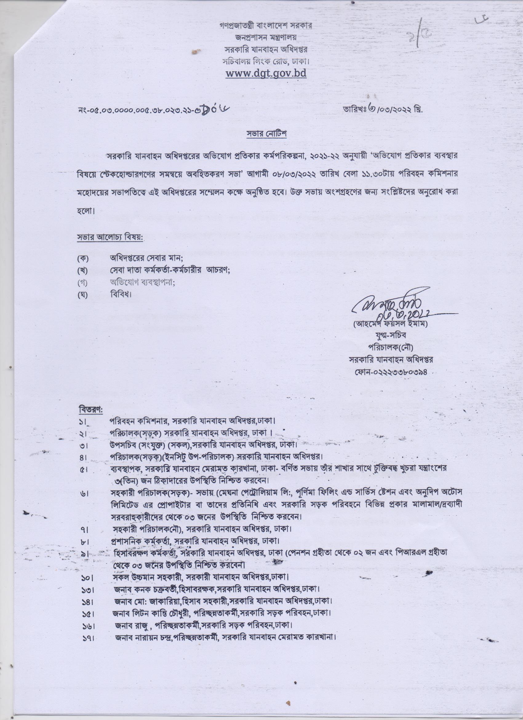 অভিযোগ প্রতিকার ব্যবস্থা সংক্রান্ত কর্মপরিকল্পনা, ২০২১-২২; তারিখ-১০.০১.২০২২